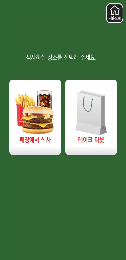 ▶ 매장에서 식사할지 포장 할지 선택합니다.