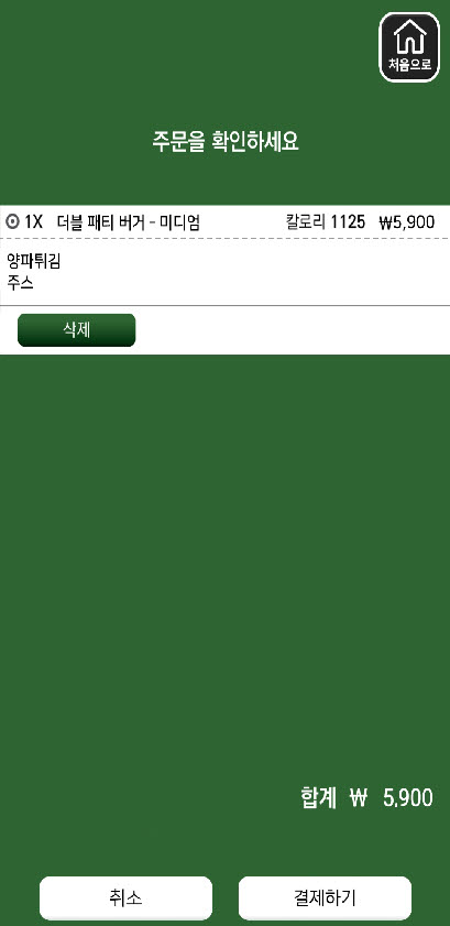 키오스크 앱 패스트푸드 주문 사용법 설명이었습니다.